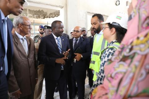 الوزير تجول في أرجاء المباني الجاري تنفيذها من وكالة الأمم المتحدة للخدماتUNOPS مشددا على ضرورة مراعاة أفضل المعايير، وعلى احترام الآجال الزمنية للتسليم.