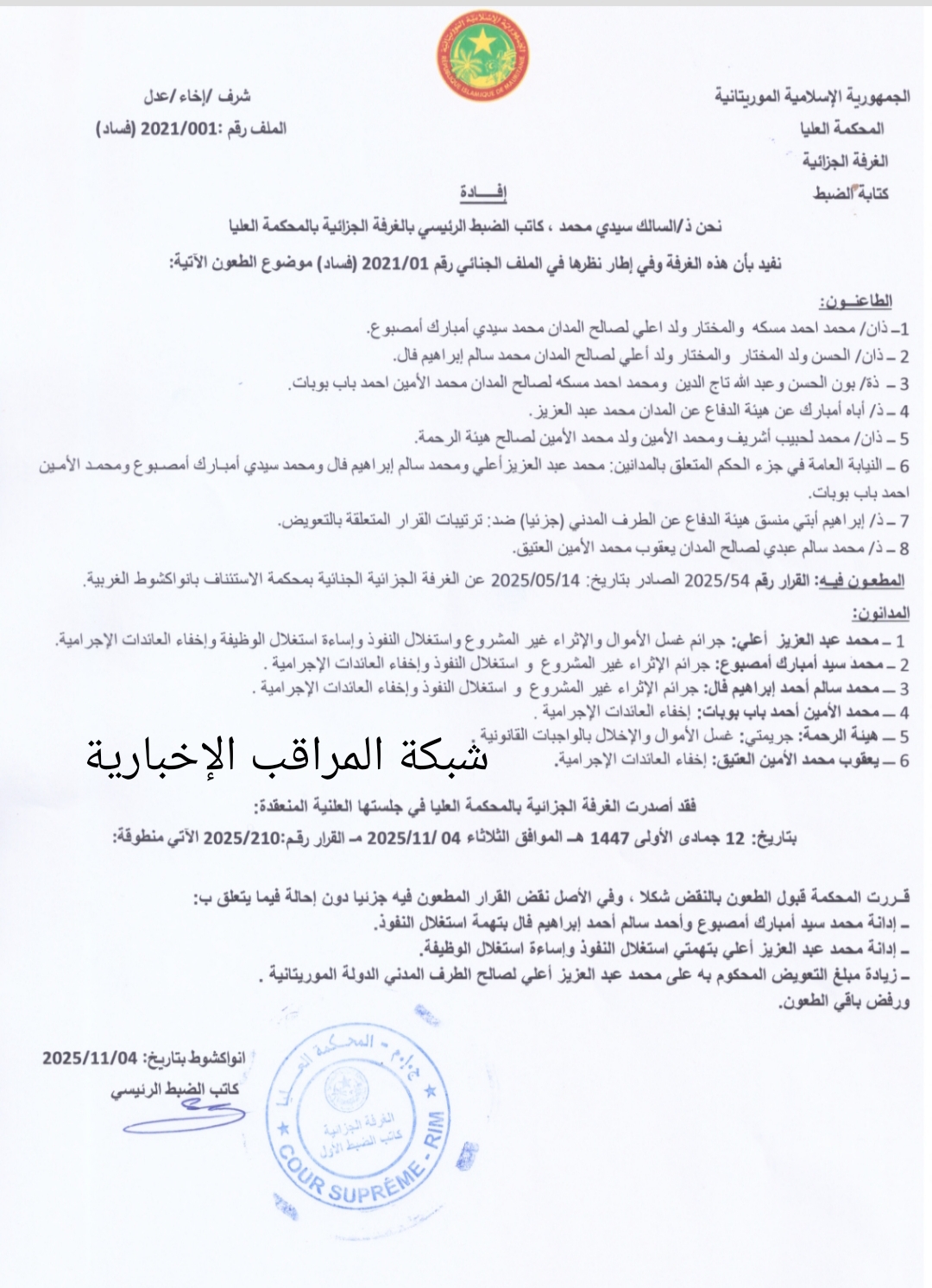 - تم الغاء تهمة استغلال النفوذ عن كل من المرخي و ولد امبصبوع