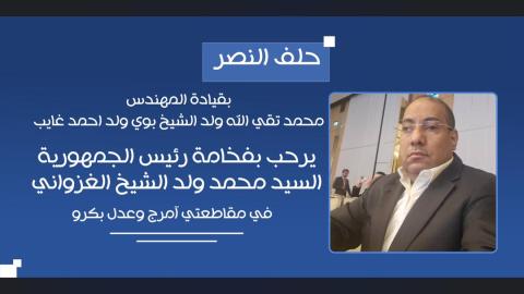 عشية الزيارة المرتقبة لرئيس الجمهورية محمد ولد الشيخ الغزواني إلى مقاطعتي عدل بقرو وآمرج، شهدت مدينة آمرج إعلان تأسيس تكتل سياسي جديد يحمل اسم *حلف النصر*، *بقيادة المهندس محمد تقي الله ولد الشيخ بوي، المدير العام لشركة السكر* . ويُظهر حجم الحضور السياسي والاجتماعي للمؤسسين أن الحلف يسعى لتكريس موقعه كقوة صاعدة ضمن خارطة التحالفات المحلية، استعداداً للاستحقاقات المقبلة، *ومساهمةً في ترسيخ دولة المواطنة وتعزيز الولاء للوطن قبل أي انتماء آخر* .