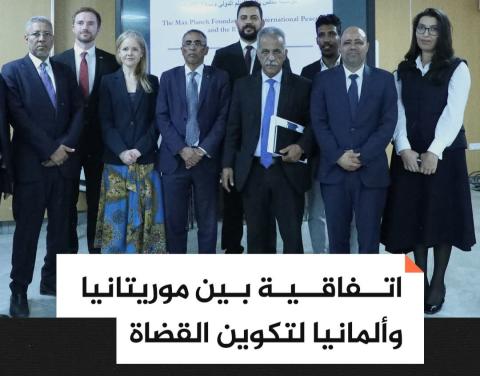 وقعت وزارة العدل اليوم في نواكشوط اتفاقية تعاون مع مؤسسة "ماكس أبلانك" للسلم الدولي وسيادة القانون الألمانية، تهدف إلى تنظيم أربع ورشات تكوينية لفائدة القضاة الموريتانيين، وذلك في إطار تعزيز القدرات القضائية وتبادل الخبرات بين الجانبين.