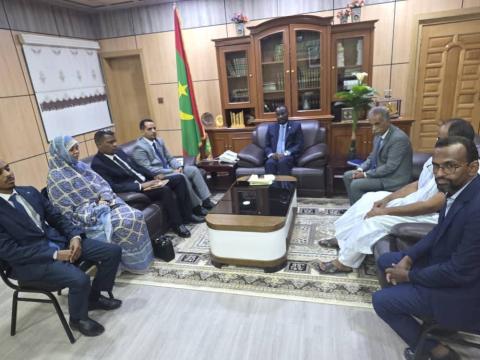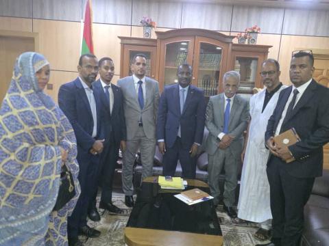 اجتمع معالي وزير العدل، محمد ولد اسويدات، بالمكتب التنفيذي للنقابة الوطنية لكتاب الضبط برئاسة الاستاذ الشيخ محمد سيدها، وتمحور اللقاء حول بعض المطالب الأساسية التي قدمها المكتب امام الوزير الذي رحب بالنقابة واثنى على دورها الاساسي في المنظومة العدلية معتبرا ان كتاب الضبط شركاء في العمل القضائي مشيرا إلى ان تحسين ظروفهم ليس مطلبا بقدر ماهو حق مشروع ،متعهّدًا بتحمل مسؤولية الوزارة في تحقيقه، في خطوة رحبت بها النقابة واعتبرتها انطلاقة نحو نتائج ملموسة.