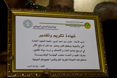 نظمت الهيئة الوطنية للمحامين اليوم بقصر العدالة بولاية انواكشوط الغربية، نشاطا لتكريم أول محام وأول قاض .