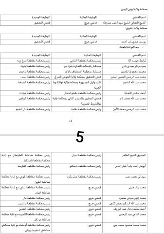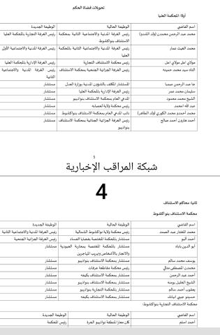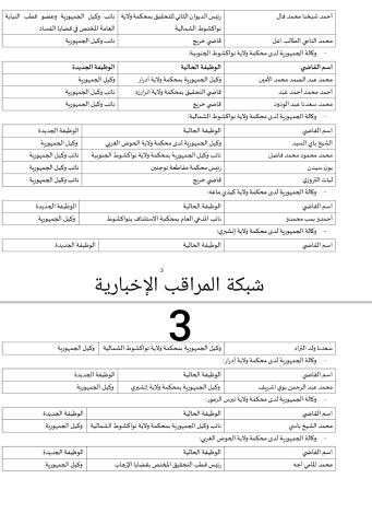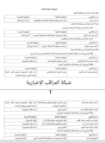 تحويلات واسعة على مستوى قضاة النيابة وقضاة الحكم/لائحة