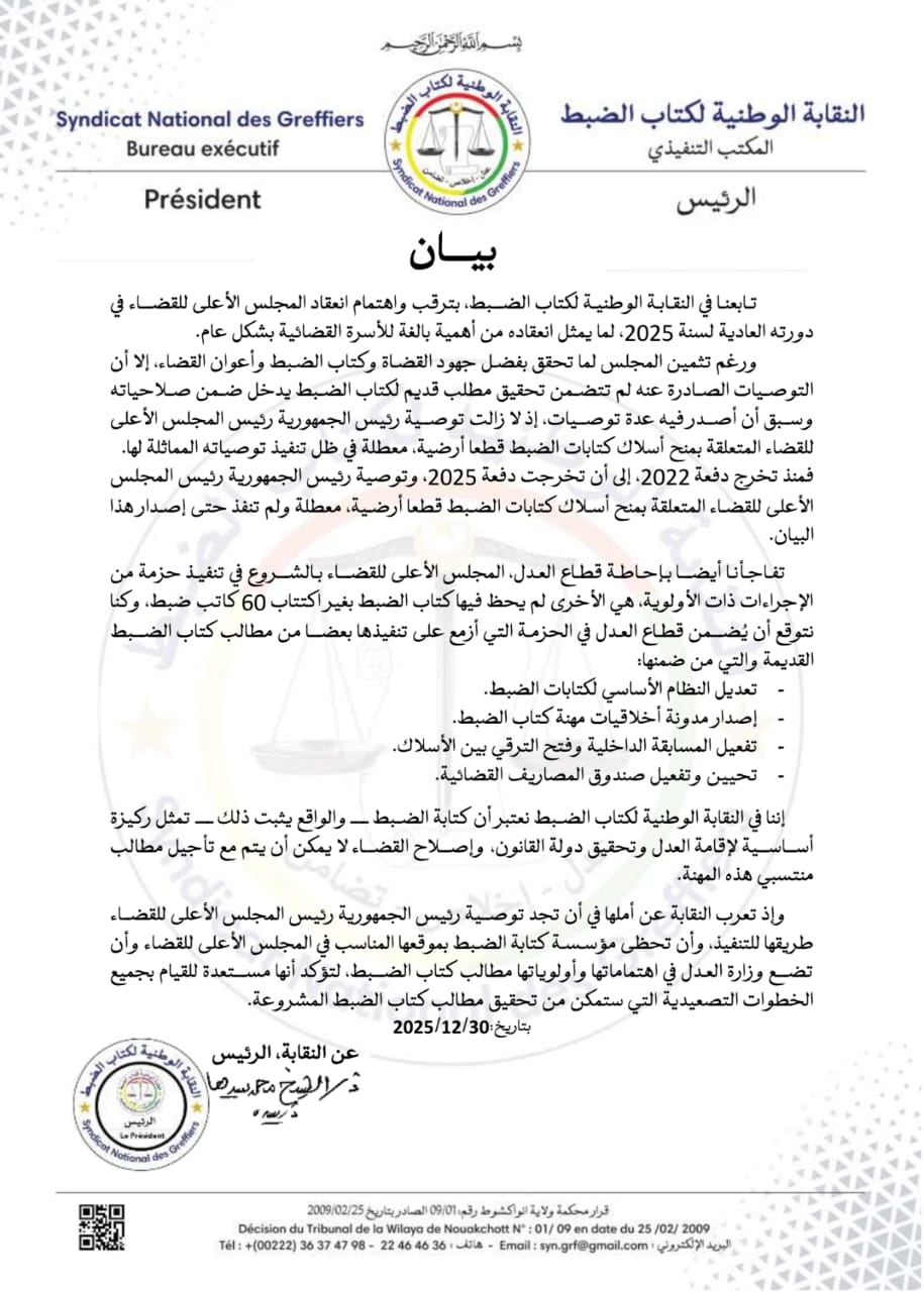 تابعنا في النقابة الوطنية لكتاب الضبط، بترقب واهتمام انعقاد المجلس الأعلى للقضاء في دورته العادية لسنة 2025، لما يمثل انعقاده من أهمية بالغة للأسرة القضائية بشكل عام.