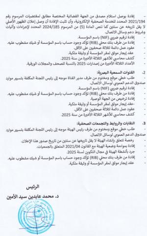 - طلب خطي موقع ومختوم من طرف رئيس الهيئة موجه إلى رئيس اللجنة المكلفة بتسيير موارد صندوق الدعم العمومي لوسائل الاتصال.