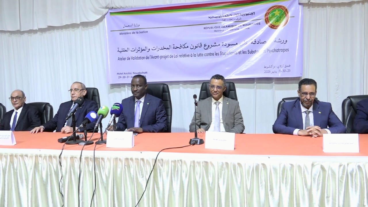 أشرف معالي وزير العدل السيد محمد ولد اسويدات اليوم الخميس بانواكشوط الغربية على إطلاق أعمال ورشة المصادقة على مسودة مشروع قانون مكافحة المخدرات والمؤثرات العقلية.
