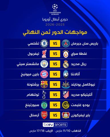 أسفرت قرعة دور الـ16 من منافسات دوري أبطال أوروبا، التي أُجريت اليوم في مدينة نيون السويسرية، عن مواجهات قوية ومرتقبة بين كبار القارة العجوز، في مرحلة يُنتظر أن تحمل الكثير من الإثارة والندية. وشهدت القرعة صدامات من العيار الثقيل بين أندية الصف الأول، ما ينذر بأمسيات كروية حافلة خلال شهر مارس المقبل في سباق التأهل إلى الدور ربع النهائي.