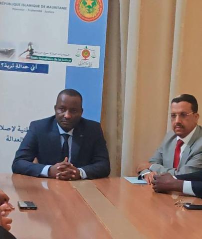 إجتمع معالي الوزير السيد محمد ولد اسويدات اليوم الخميس في مكتبه بالمكتب التنفيذى الجديد لنادي القضاة برئاسة أمينه العام فضيلة القاضي محمد ولد الشيخ ولد جدو والمكتب التنفيذى المنتهية ولايته برئاسة أمينه العام فضيلة القاضي ملاي اعل ولد ملاي اعل ، وقد شكل اللقاء مناسبة لتدارس السبل الكفيلة بتطوير العمل القضائي بما يتماشي و طموح فخامة رئيس الجمهورية السيد محمد ولد الشيخ الغزواني رئيس المجلس الأعلي للقضاء ، وخلال اللقاء هنأ معالي الوزير المكتب التنفيذى الجديد لنادي القضاة والمكتب التنفيذى المنصرم علي الإجماع الذي حصل في الإنتخابات الأخيرة للنادي مؤكدا عزم الحكومة المضي قدما في العمل المتواصل علي بناء الثقة مع كافة الفاعلين في الحقل القضائي بما يضمن تسريع وتيرة تجسيد التوصيات الواردة بالوثيقة الوطنية لإصلاح وتطوير العدالة